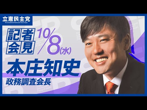 本庄知史政務調査会長は10月8日、記者会見で、(1)野党の政策責任者会談を10月9日(木)14時30分に開催(2)自民党新執行部人事への見解(3)ガソリン減税・給付付き税額控除・企業・団体献金の見直し(政治とカネ)に関する協議の継続要求(4)公明党との政策レベル連携の可能性(5)国会早期召集と物価高・実質賃金減への対策――等について発言しました。